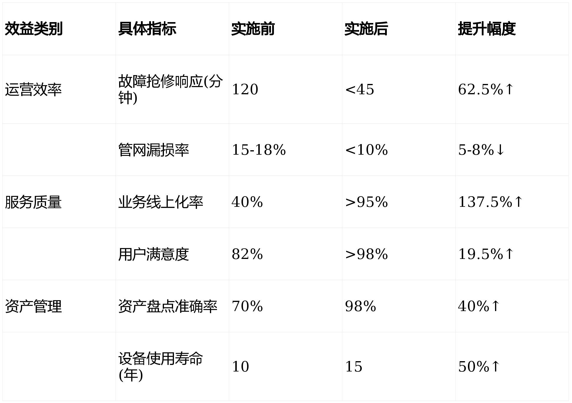 运营智能化:通过AI算法与数字孪生技术,实现从被动响应到主动预测的运营模式转变。精准治漏降低产销差约2%,泵站综合能耗降低5%,故障响应时间缩短62.5%,大幅提升运营效率与服务质量。