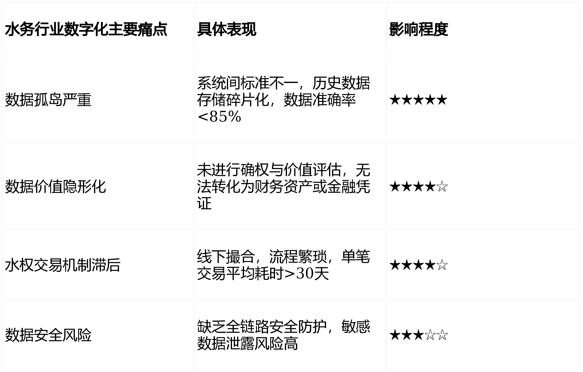 尽管政策环境利好,但当前水务行业的数字化进程仍面临严峻挑战。通过对多家大型水务集团的调研,我们发现行业普遍存在三座大山: